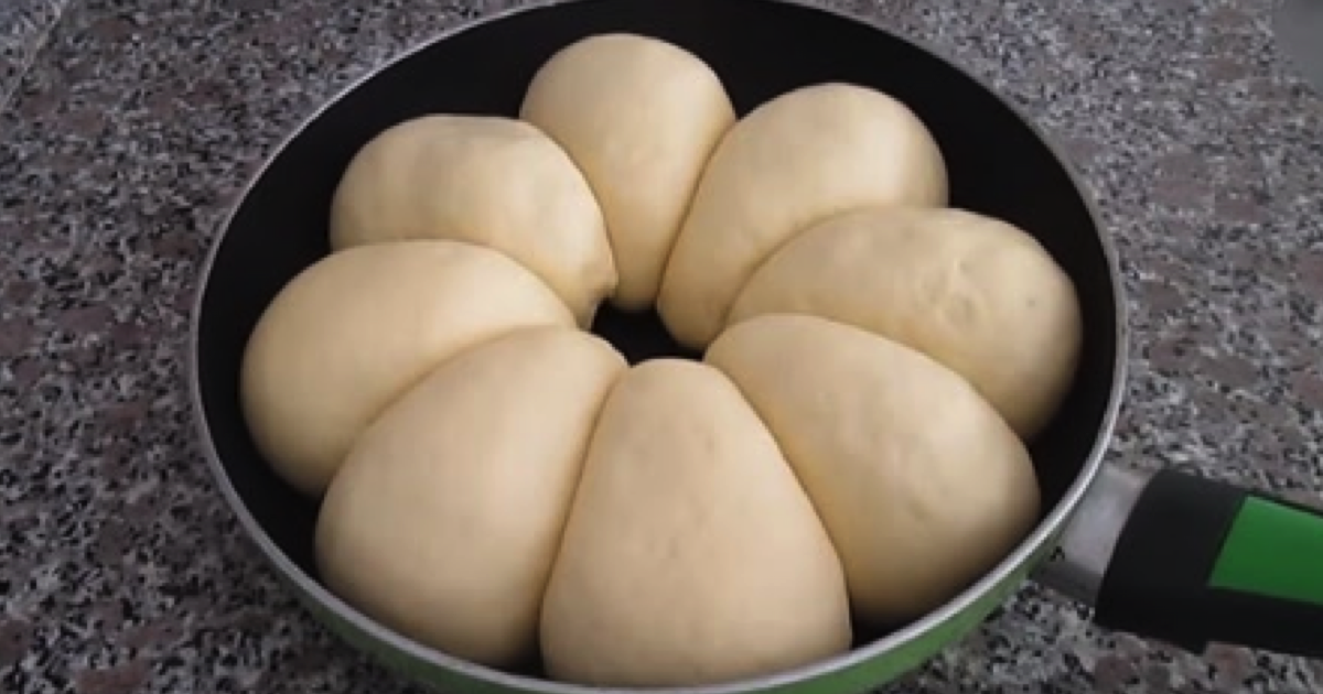 Dzielimy ciasto na 8 części. Każdy kawałek formujemy w owalną bułeczkę. Bułeczki wykładamy na patelni, którą wcześniej należy nasmarować dokładnie olejem. Ponownie zostawiamy na kilkadziesiąt minut do wyrośnięcia.