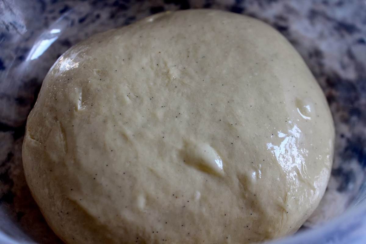 Jeśli pojawią nam się grudki, wystarczy dodać następne 20 ml oleju i wyrabiać ciasto dalej przez 10 minut. Po wyrabianiu ciasto powinno być miękkie oraz lekko lepić się do stołu. Tak wyrobione ciasto przekładamy do miski i przykrywamy spożywczą folią. Zostawiamy na 40 minut w ciepłym miejscu.