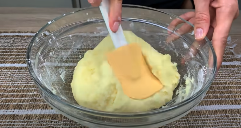 Ugotuj 6 średnich ziemniaków w osolonej wodzie, aż będą miękkie. Odcedź ziemniaki i pozwól im ostygnąć. Rozgnieć ziemniaki na gładką masę. Dodaj sól do smaku. Stopniowo dodawaj skrobię kukurydzianą, mieszając, aż ciasto będzie jednolite i niezbyt lepkie. Podziel ciasto na 4 równe części.