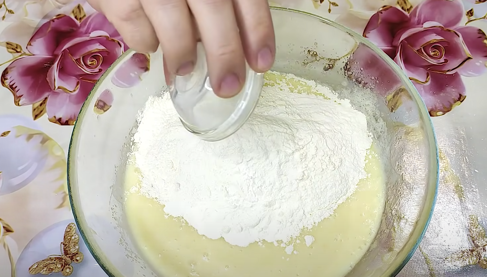 Użyj trzepaczki, aby ubić razem jajka i cukier. Wmieszaj masło i jogurt. Następnie stopniowo dodawaj mąkę i proszek do pieczenia, tak aby powstało ciasto.