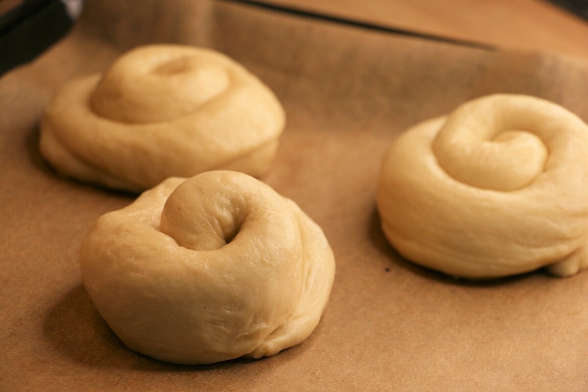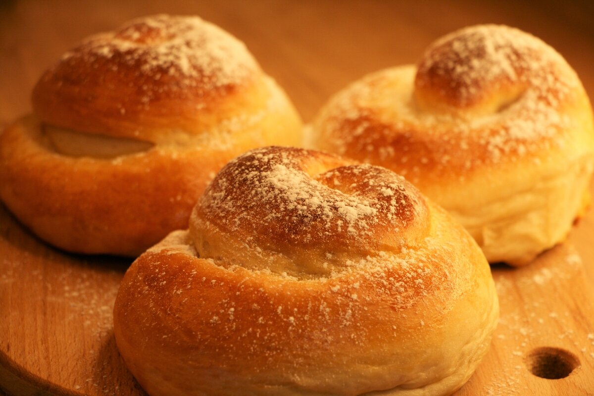 Przed pieczeniem dobrze jest też posmarować bułeczki mieszanką mleka i żółtka. Dzięki temu będą błyszczące i nabiorą ładnego koloru.