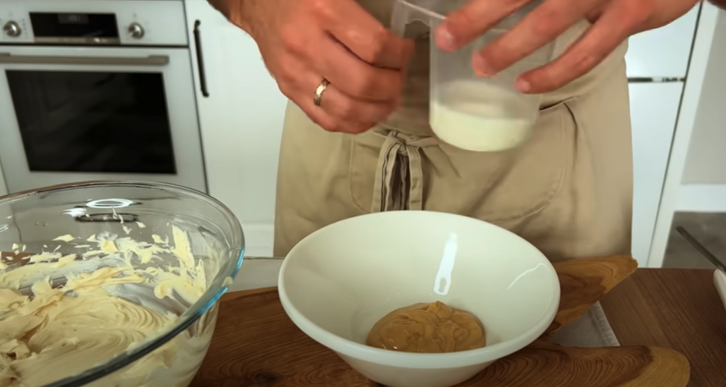 Pozwól żelatynie napęcznieć, a następnie rozpuść ją na małym ogniu, ciągle mieszając. W misce połącz 300 g ricotty lub serka śmietankowego, 100 g pasty orzechowej, szczyptę soli i słodzik do smaku. Dodaj połowę rozpuszczonej żelatyny do masy kremowej i dobrze wymieszaj. W oddzielnej misce połącz 50 g pasty orzechowej, 60 ml mleka, 1 łyżkę niesłodzonego kakao i słodzik do smaku.