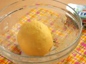 Na koniec dosypujemy pozostałą mąkę, i wszystko wyrabiamy. Jeżeli ciasto za bardzo się rwie, można dodać odrobinę (najwyżej łyżkę) wody. Gdy jest gotowe, należy je rozwałkować.