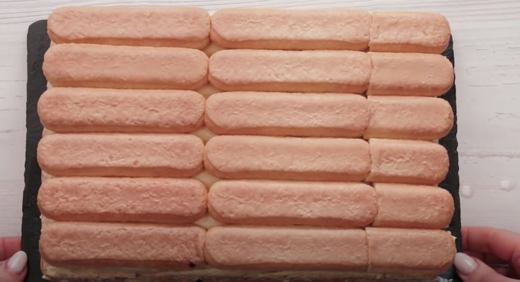 Następnie znowu przychodzi pora na biszkopty nasączone mlekiem i na pozostałą część masy. Ciasto powinno znaleźć się w lodówce na mniej więcej 12 godzin, a najlepiej na całą noc.