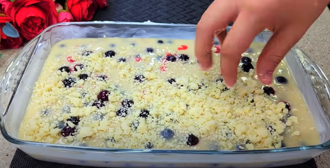 W misce wymieszaj jaja ze szczyptą soli. Dodaj 12 łyżek cukru, 12 łyżek mleka, 12 łyżek oleju roślinnego, 12 łyżek mąki oraz 10 g proszku do pieczenia. Wszystko dobrze wymieszaj, aż masa będzie jednolita. W osobnej misce wymieszaj 200 g porzeczek z 40 g mąki i 40 g cukru. Posmaruj formę masłem i rozłóż na niej przygotowane porzeczki. Wylej ciasto na porzeczki i piecz w temperaturze 180°C przez 40 minut.