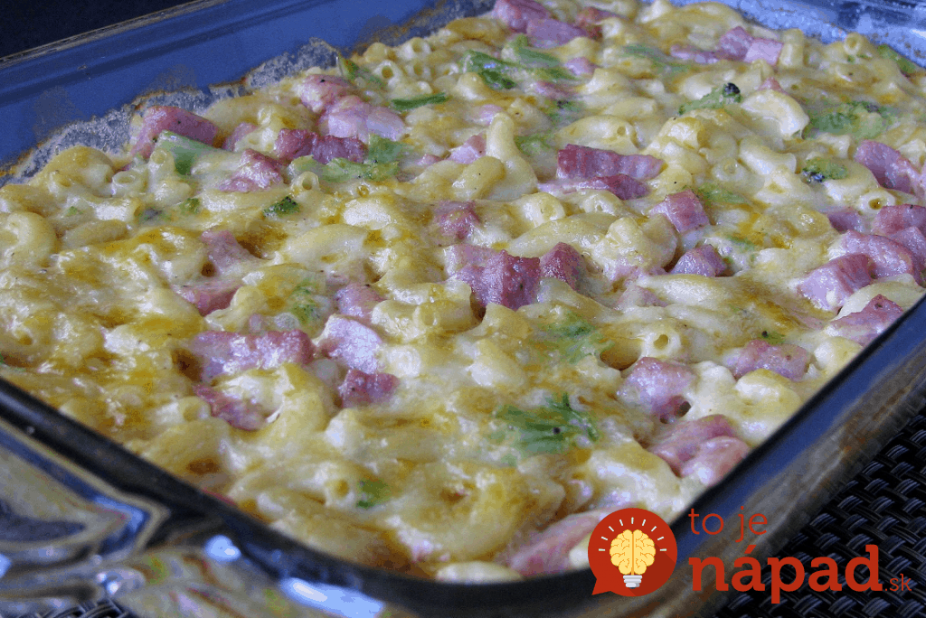 Wymieszaj makaron z przygotowanym sosem i ułóż w naczyniu do zapiekania. Możesz dodać także szynkę, albo drobno pokrojony boczek. Na koniec posyp startym serem. Przykryj folią i piecz w rozgrzanym piekarniku w temperaturze 200-220°C.Piecz przez około 30 minut.