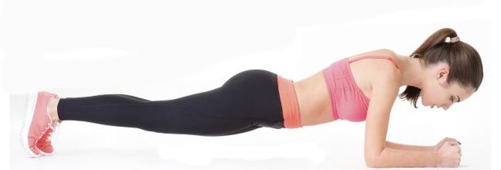 Przyjmij pozycję jak do pompki, opierając się jednak na odcinku przedramiennym i palcach stóp. Zegnij łokcie pod kątem prostym. Staraj się utrzymać ciało w linii prostej, nie opuszczać za nisko odcinka lędźwiowego, ani nie podnosić tego odcinka zbytnio ku górze.