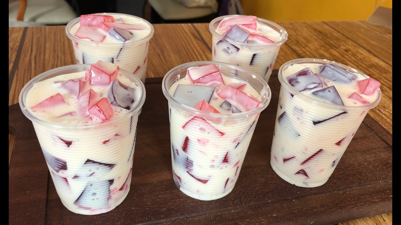 Przygotuj galaretki według instrukcji na opakowaniu, a następnie wlej do płaskich naczyń i pozostaw do stężenia w lodówce. Po stężeniu pokrój galaretki w kostkę. W dużej misce ubij śmietanę mleczną na sztywno. Delikatnie wmieszaj skondensowane mleko do ubitej śmietany, aż składniki się połączą.