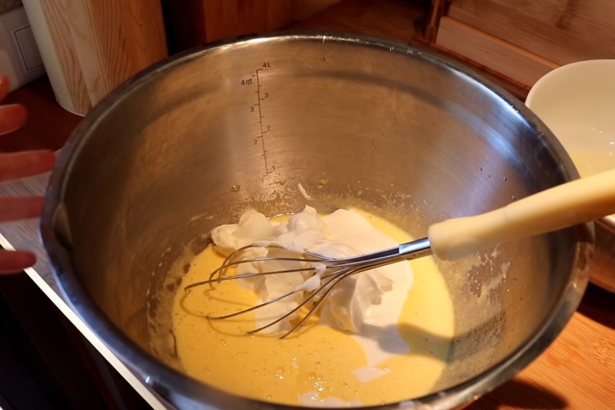 Kolejnym krokiem jest ubicie białek na sztywną pianę. Pod koniec miksowania dodajmy kilka kropel soku z cytryny. Otrzymaną pianę dodajemy do masy z jogurtem i żółtkami. Wszystko delikatnie ze sobą mieszamy.