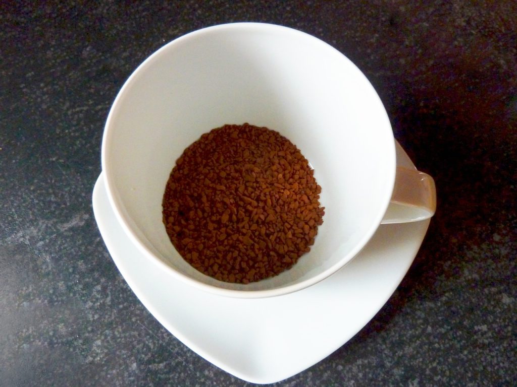 Dodaj cukier i kawę do osobnej miski. Następnie dodaj gorącą wodę. Wymieszaj mleko z kawą. Wylej ciasto na blachę. Po ostygnięciu obróć ciasto na drugą stronę.