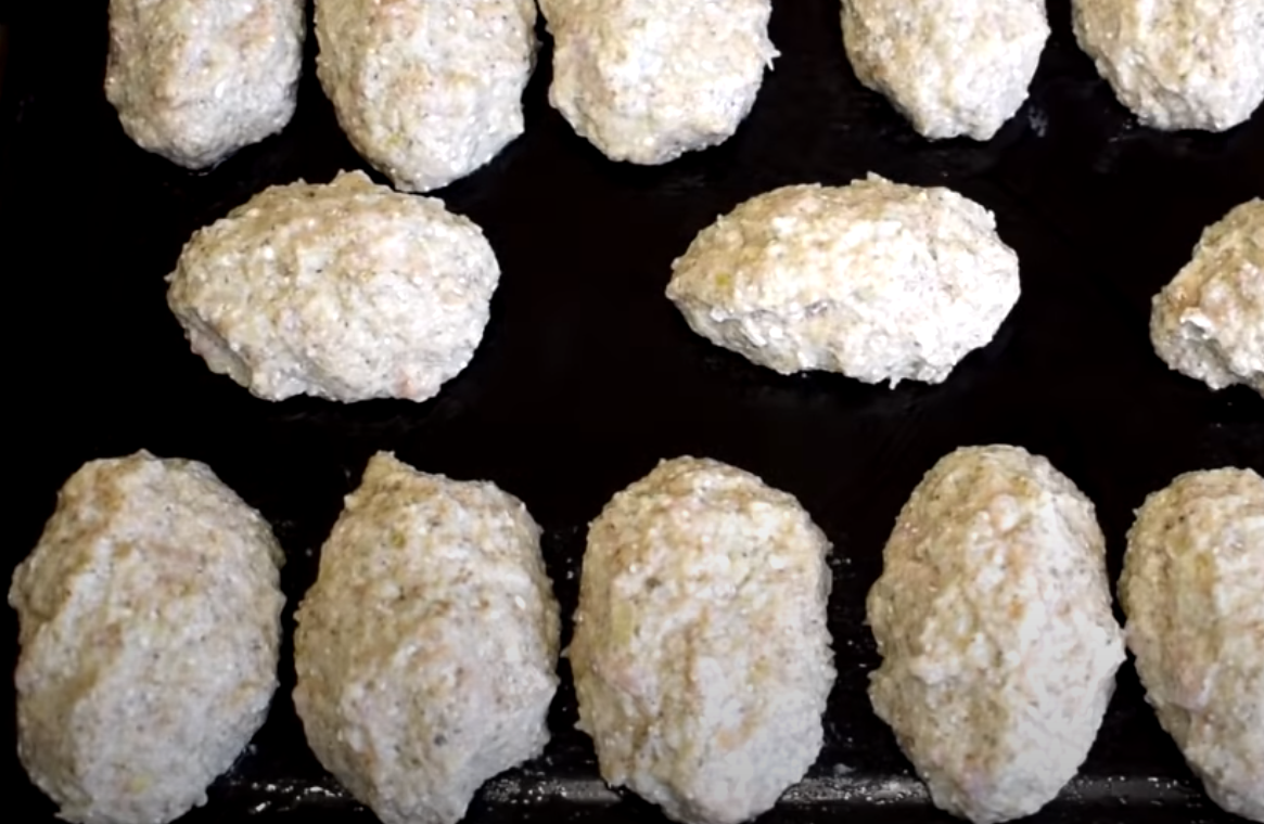 Nasmaruj olejem blachę do pieczenia. Z masy uformuj kotlety i ułóż je na blasze do pieczenia. Piecz całość przez 30-35 minut w piekarniku nagrzanym do 180 stopni. Po tym czasie możesz wyjąć jednego klopsa i pokroić go w plastry.