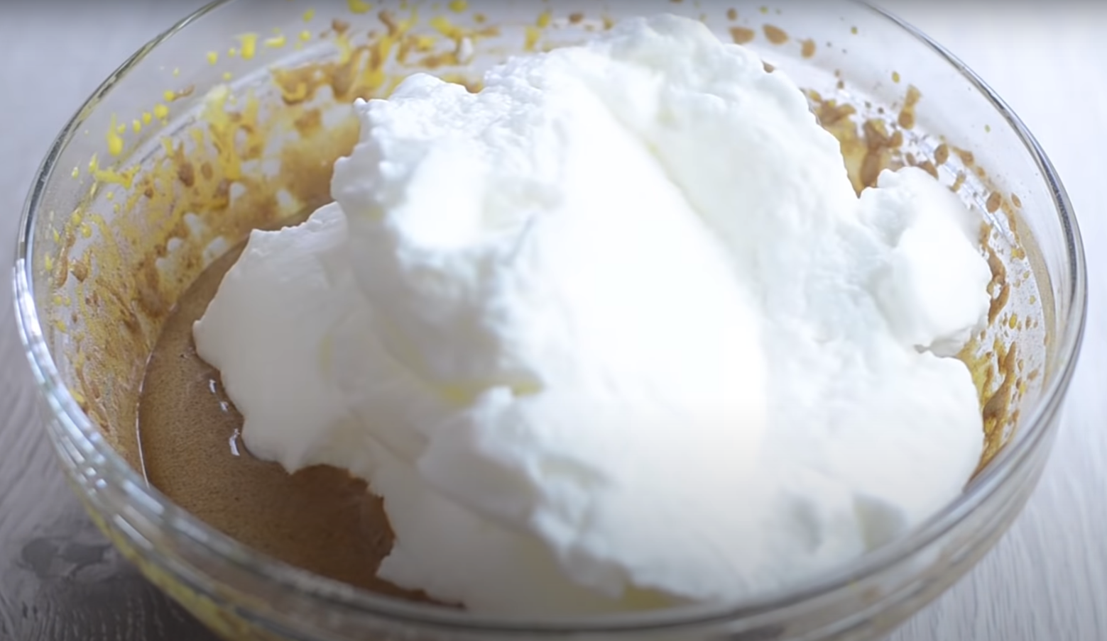 Teraz czas na przygotowanie ciasta. Wszystkie sypkie składniki: mąkę, proszek do pieczenia, kakao wymieszaj w misce. W innym naczyniu ubij białka na sztywną pianę. W kolejnym ubij także żółtka z cukrem, następnie dodaj do nich letnią wodę i wsyp przygotowane wcześniej suche składniki. Całość delikatnie wymieszaj z ubitymi białkami.
