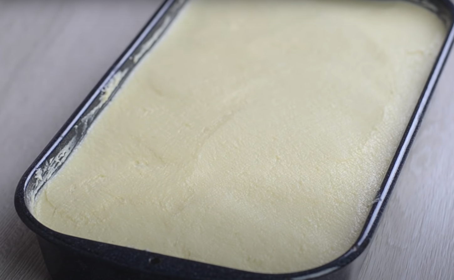 Przygotuj formę o wymiarach 20×36 cm. Jej wnętrze posmaruj olejem lub masłem i posyp mąką. Następnie wlej do niej ciasto. Ważne! Rozprowadź równomiernie i w celu pozbycia się nadmiaru powietrza, postukaj blachą w stół lub o inne podłoże. Piecz w temperaturze 180 st C przez około 35-40 minut. Pozostaw do wystudzenia.