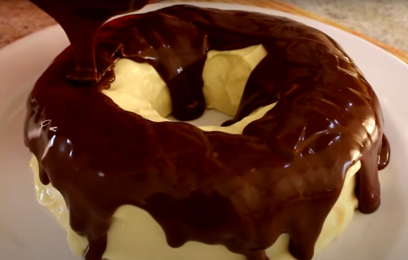 Przygotuj formę. Nasmaruj ją tłuszczem, na przykład olejem. Wlej do formy masę. Włóż do zamrażarki i pozostaw tam aż do całkowitego zamarznięcia. W tym czasie przygotuj polewę czekoladową.