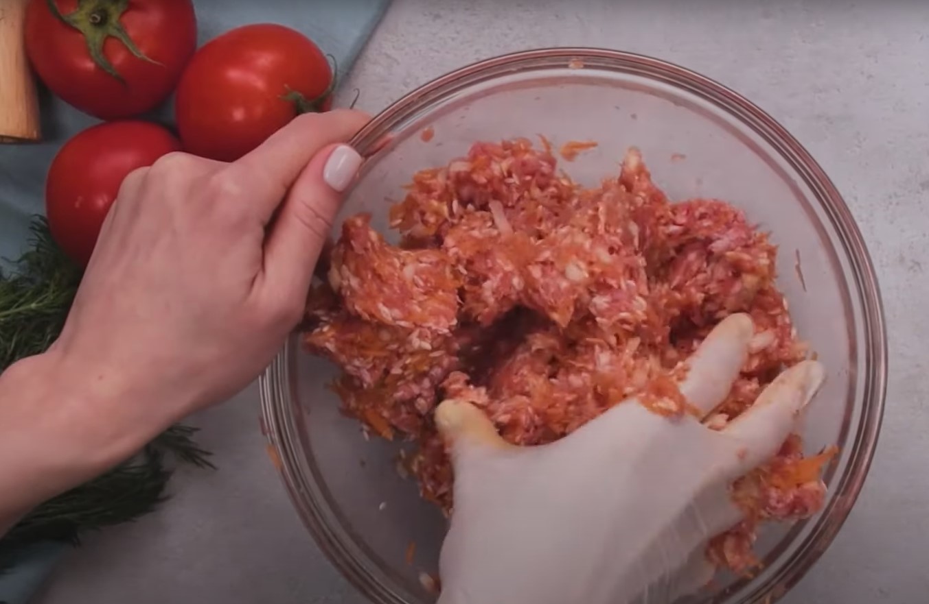 Cebulę drobno posiekaj. Połączyć ją z mięsem i ryżem. Marchew obrać i zetrzeć na tarce o drobnych oczkach. Następnie wyciśnij czosnek. Wymieszaj masę mięsną z jajkiem, czosnkiem i marchewką. Doprawić i dobrze wymieszać.
