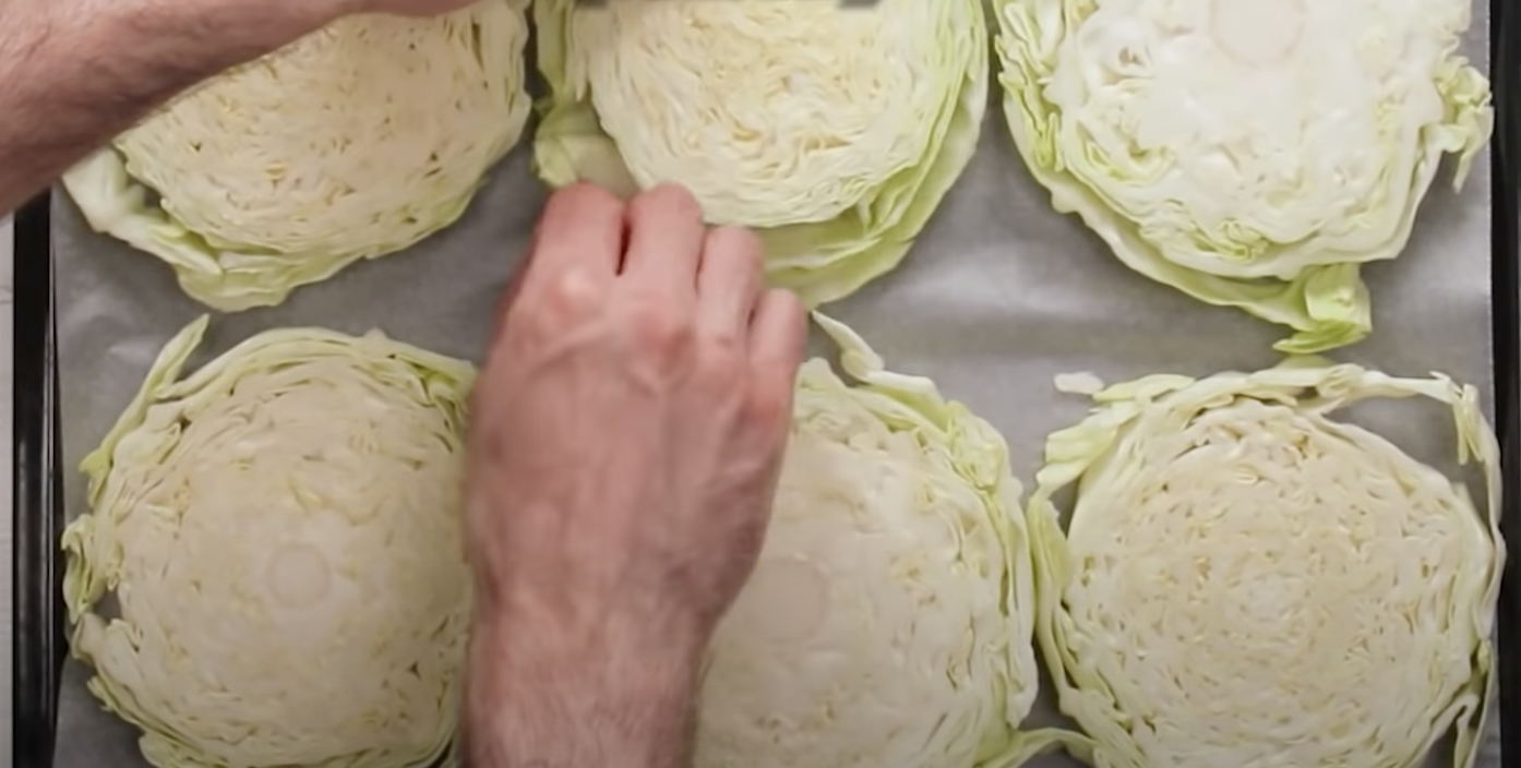 Poszatkowaną kapustę ułożyć na blasze wyłożonej papierem do pieczenia.