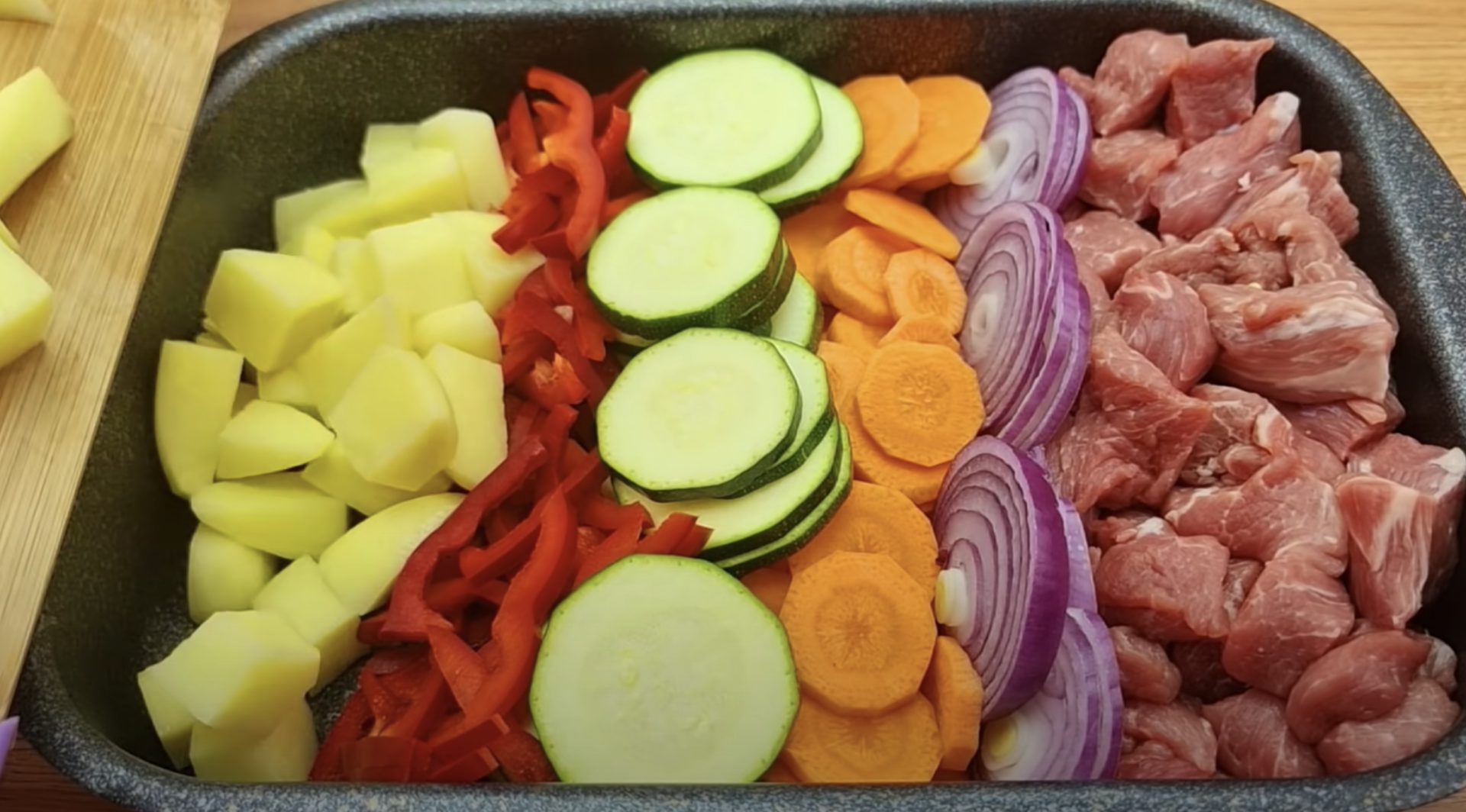 Przepisy kulinarne Przepis na aromatyczne mięso w towarzystwie warzyw. Jest to idealny posiłek dla całej rodziny. Last updated lis 9, 2022 289 Z tego przepisu powstaje pyszne danie jednogarnkowe, które pokochają wszyscy. Pyszne połączenie mięsa i warzyw, zapiekane w żaroodpornej blaszce. Składniki: 600 g wieprzowiny 1 marchewka 1 cebula 1 cukinia 1 papryka 5 ziemniaków Przyprawy: 1,5 łyżeczki soli Świeżo zmielony czarny pieprz, 0,5 łyżeczki Tymianek Rozmaryn Oregano 2 ząbki czosnku 100g sera żółtego 5 łyżek stołowych olejów roślinnych Koperek Jak przygotować: WróćCzytaj dalej