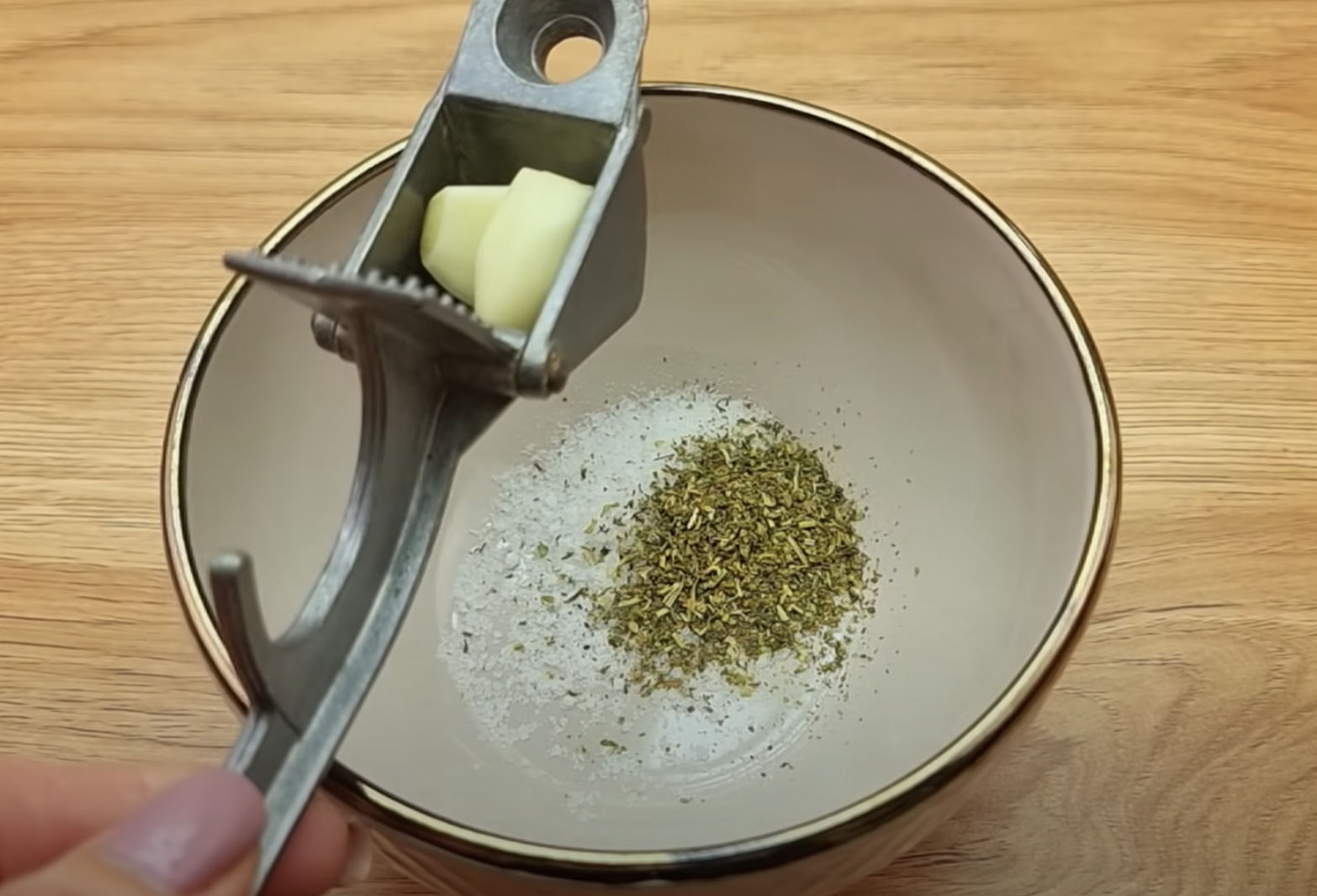 Czosnek drobno siekamy lub przeciskamy przez praskę. Dodaj sól, oliwę, zioła i pieprz. Dobrze wymieszaj sos.