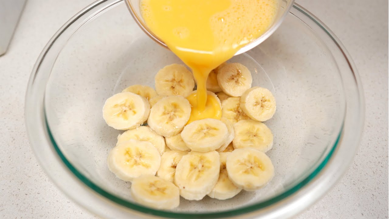Dodaj pokrojone w kostkę galaretki i delikatnie wymieszaj. W osobnej misce rozgnieć banana widelcem lub zmiksuj w blenderze. Dodaj 2 duże jajka i dobrze wymieszaj. Rozgrzej trochę masła na patelni. Wlej porcję ciasta na patelnię i smaż naleśniki z obu stron, aż będą złociste. Na talerz wyłóż porcję deseru z galaretką i śmietaną.