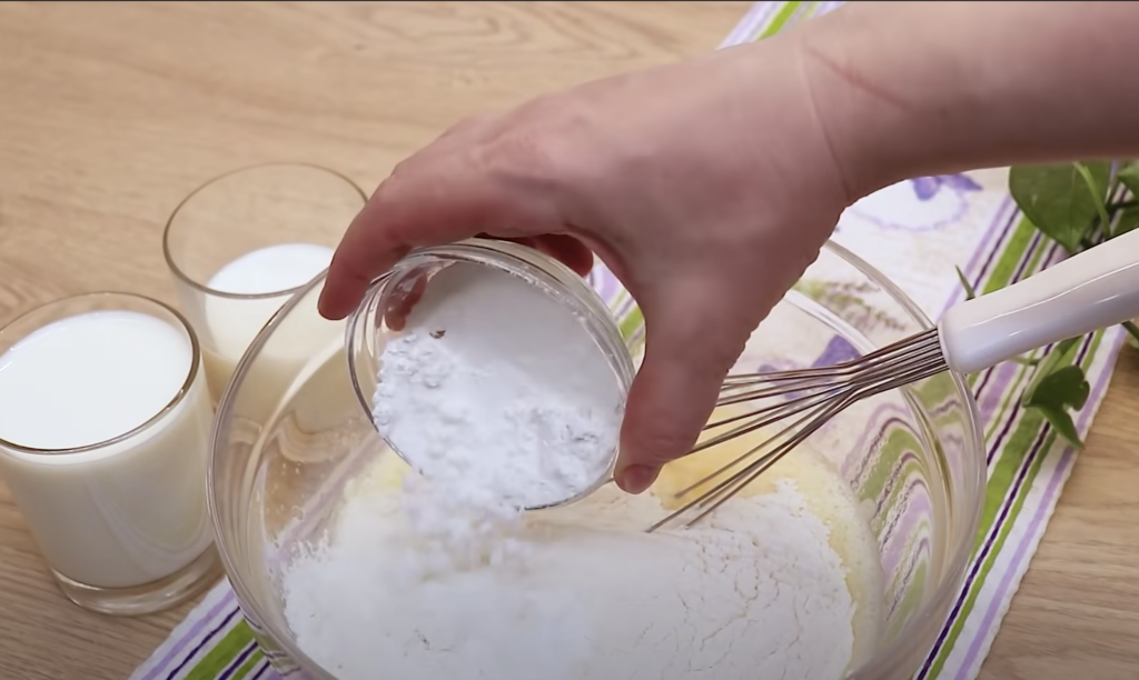 Stopniowo mieszaj przesianą mąkę, skrobię i mieszaj na jednolitą mieszankę.