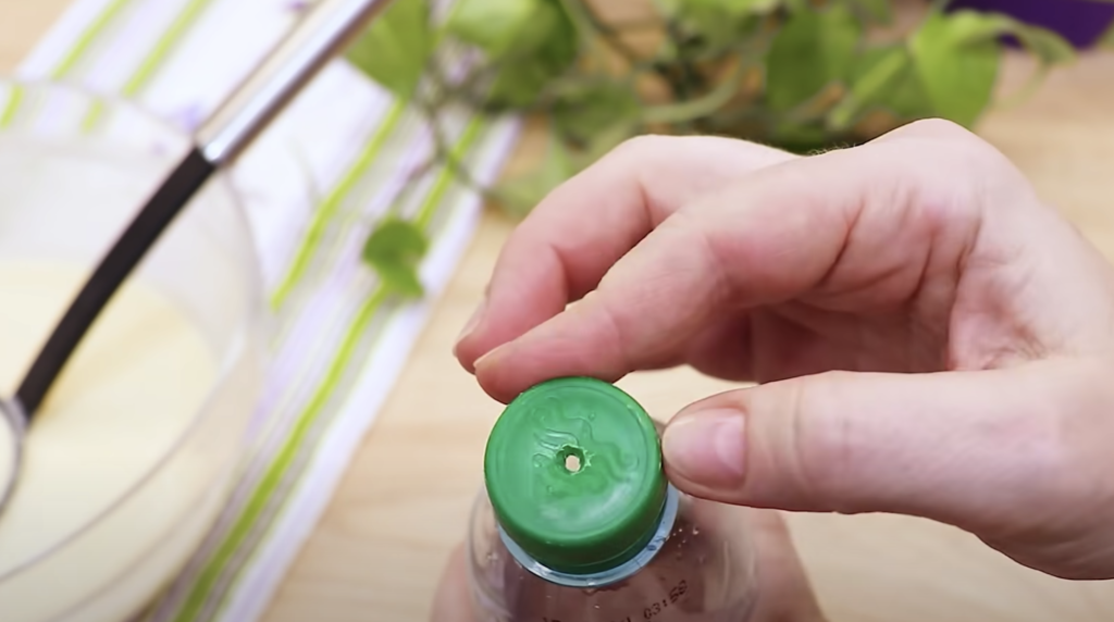 Wlej ciemne ciasto do butelki i zrób otwór w pokrywce.