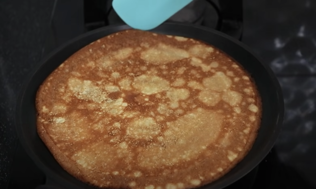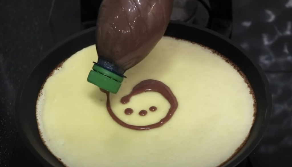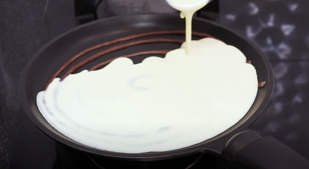 Upiecz przez chwilę na patelni, a następnie wylej jasne ciasto za pomocą chochli.