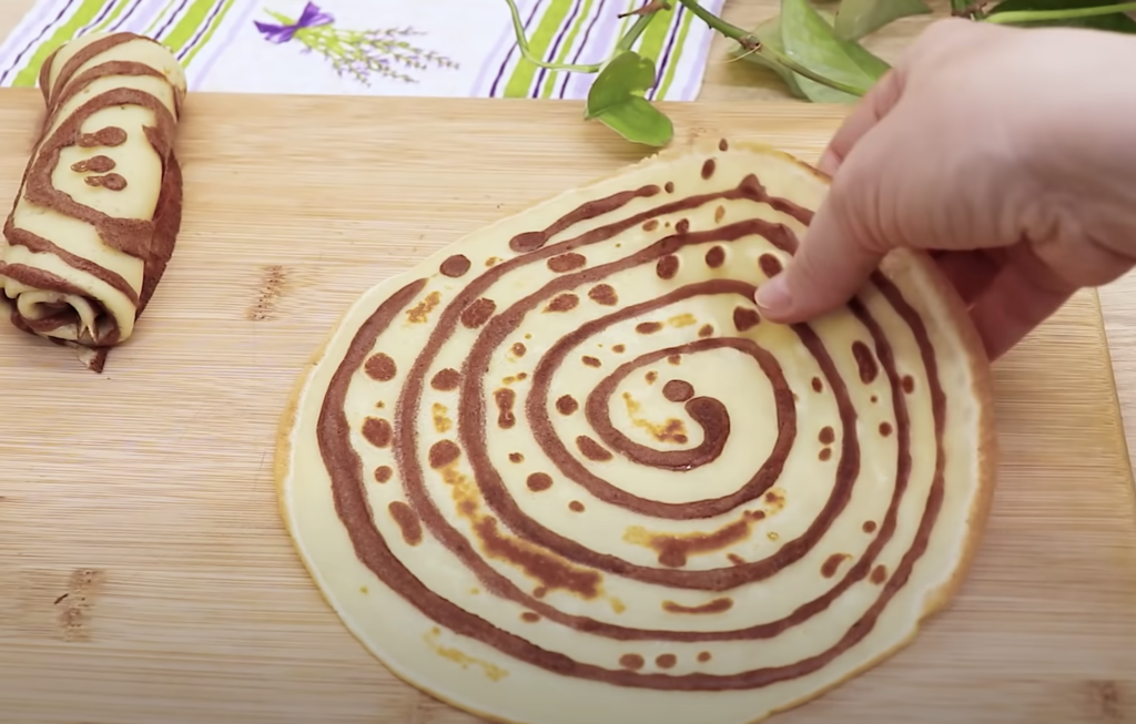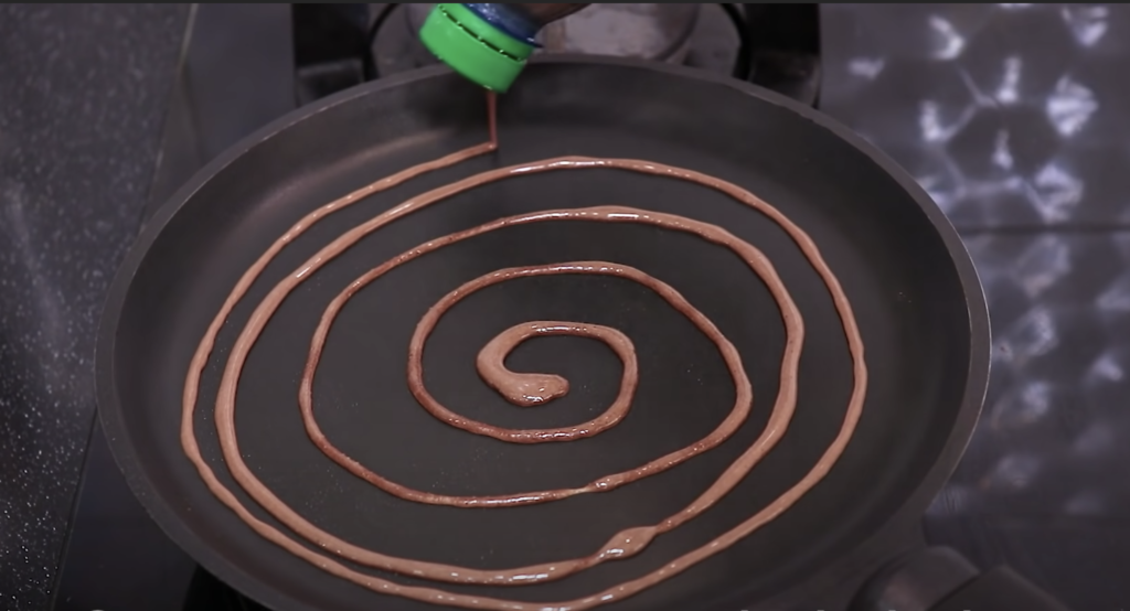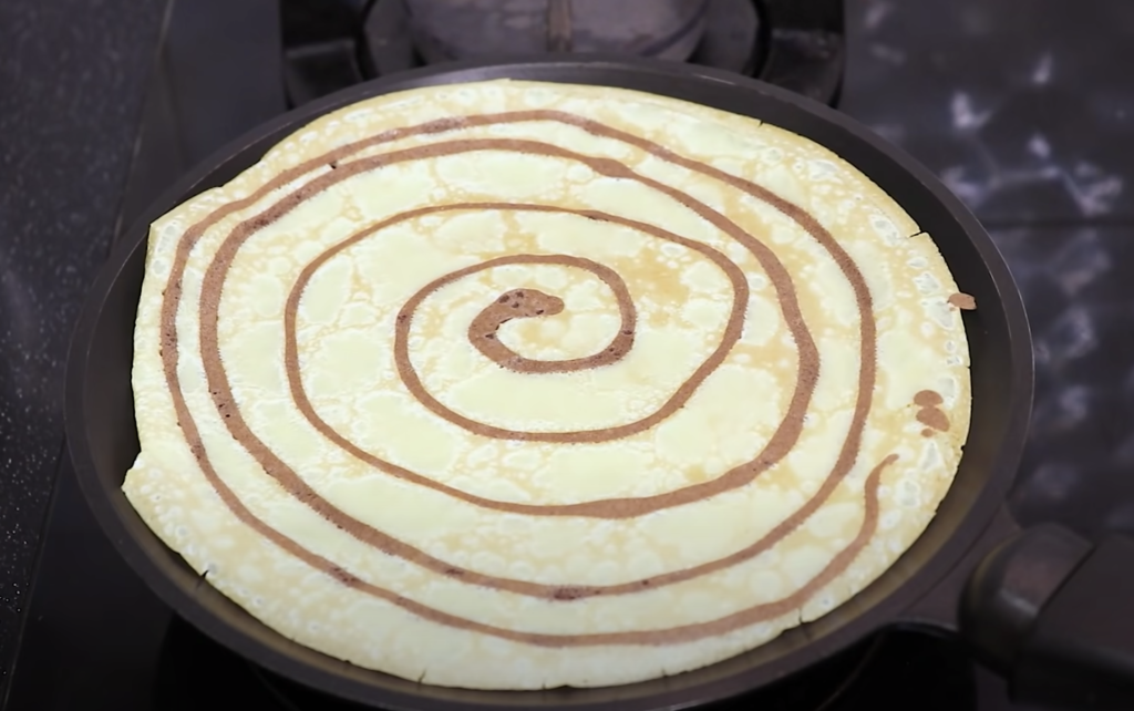 Druga opcja – wylewamy na patelnię ciemne ciasto z butelki, jednocześnie „malując” spiralę.