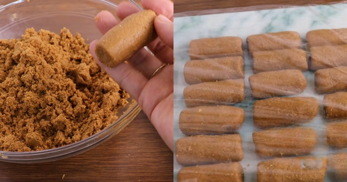 Do herbatników dodaj masło orzechowe a następnie przy pomocy dłoni połącz składniki do uzyskania jednolitej masy. Powstała masa powinna być lekko wilgotna oraz niezwykle elastyczna. Następnie należy uformować ciasteczka. Przykładowa ich forma to mała roladka, jednak możesz nadać im dowolny kształt.