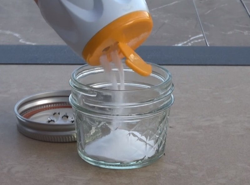 Do słoiczka wsyp sodę oczyszczoną. Warstwa powinna mieć około centymetra grubości.