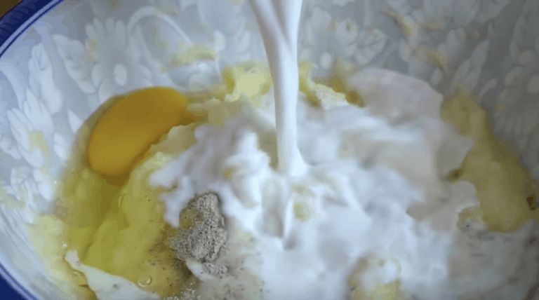 Dodajemy sól, pieprz oraz drożdże, a następnie mleko i jajko.