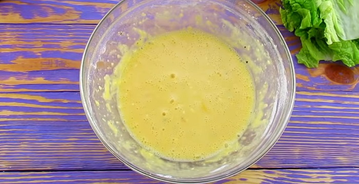Wymieszać jajka z odrobiną soli i pieprzu. Dodaj mąkę i mieszaj do uzyskania jednolitej masy.