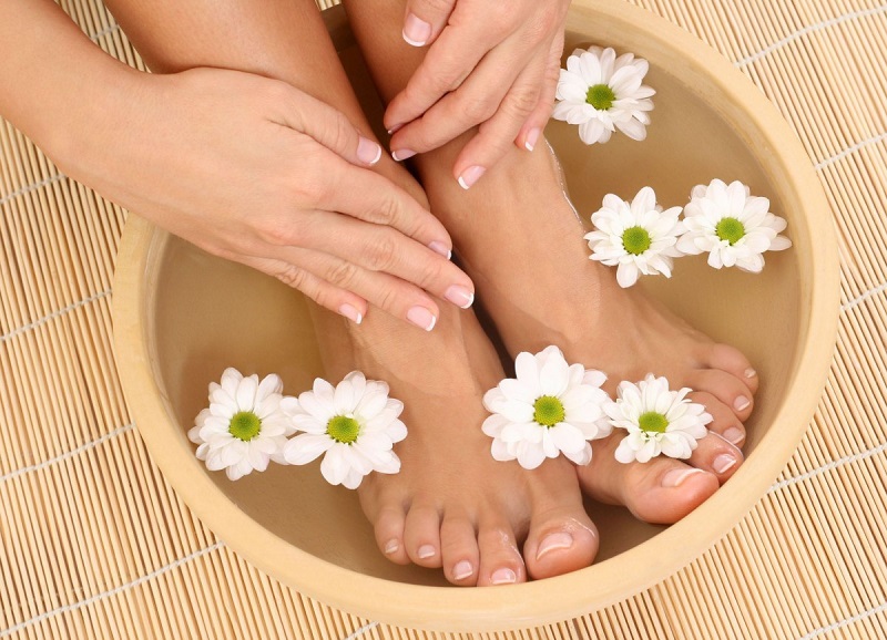 Przed dodaniem olejków, rozcieńcz je w odrobinie oliwy z oliwek. Niech Twoje stopy zażywają takiej kąpieli przez 10 minut, aby stały się głęboko nawilżone.