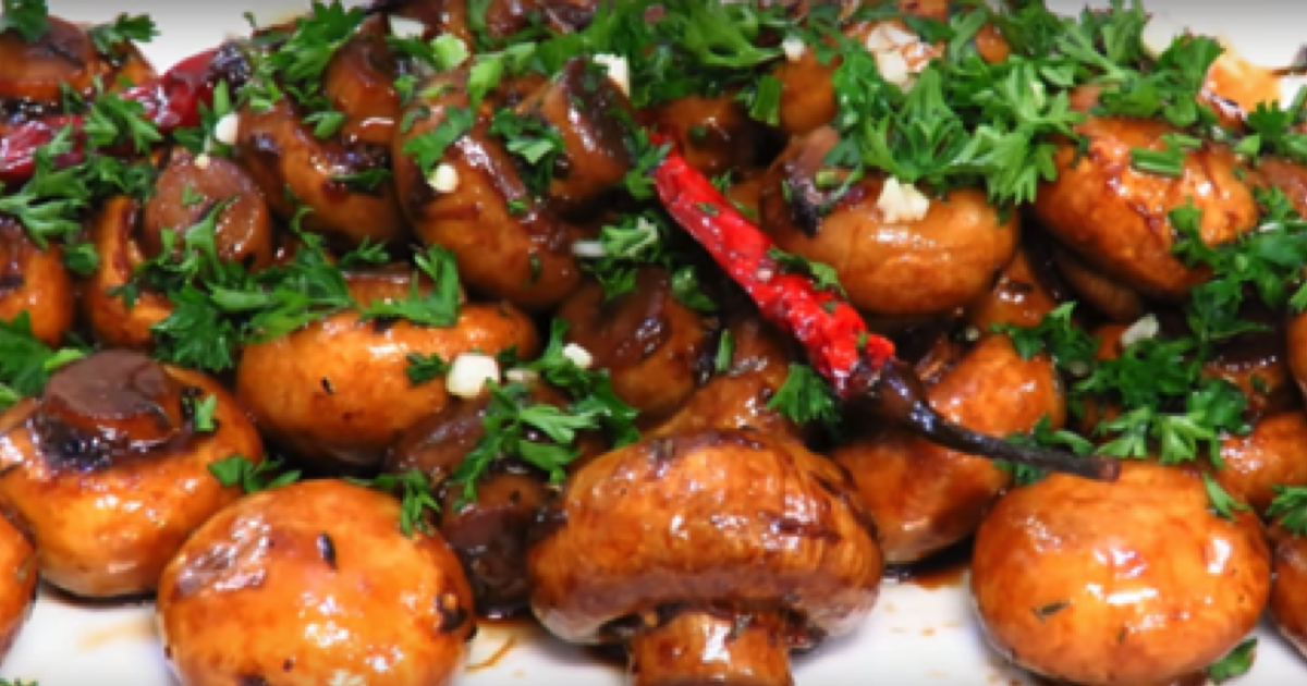 Po wykonaniu powyższych czynności pieczarki zdjąć z kuchenki, przełożyć do osobnego naczynia i posypać posiekanymi ziołami. Smacznego!