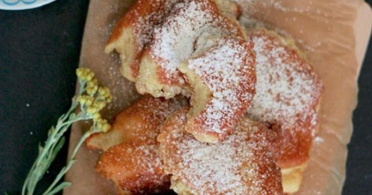„Kwartę mąki rozrobić szklanką mleka, dodać 2 łuty drożdży, wbić 4 żółtka, włożyć łyżkę świeżego masła, wyrobić wszystko warząchwią, dodać trochę soli, a skoro podrośnie brać łyżką ciasto i kłaść na rozpalony na patelni szmalec lub masło. Na półmisku posypują je cukrem”.