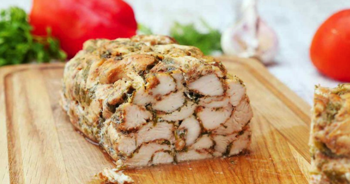 Filety z kurczaka kroimy na niewielkie kawałki i wkładamy do miski. Przyprawiamy papryką, pieprzem, solą. Dodajemy żelatynę, posiekany czosnek a także pietruszkę i koperek. Wszystkie składniki dokładnie mieszamy. Wymieszane składniki wkładamy do rękawa do pieczenia i ciasno zawijamy, tak, by uzyskać kształt rolad. Oczywiście brzegi rękawa zabezpieczamy klipsem.
