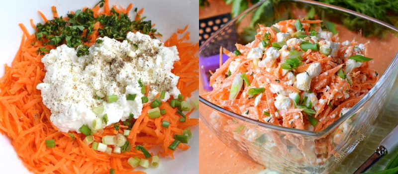 Do tak przygotowanego twarogu dorzuć marchewkę, dodaj posiekaną cebulę dymkę, pietruszkę bądź szczypiorek. Dołóż sól i pieprz do smaku oraz odrobinę oliwy z oliwek. Wszystko dokładnie, delikatnie pomieszaj. Tak przygotowaną kolorową i zachęcającą do zjedzenia sałatkę z soczystej marchwi i twarożku możesz polać jogurtem naturalnym. Do sałatki możesz również dodać siemię lniane, orzechy, czy sezam.