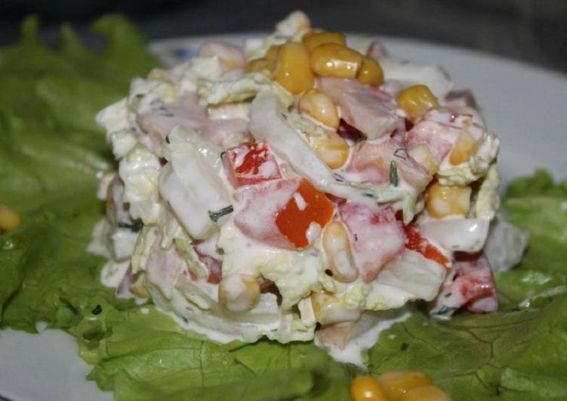 Umyj warzywa. Ogórka obierz i pokrój na paski, a pomidora i paprykę w kostkę. Ugotuj pierś z kurczaka, następnie wystudź i posiekaj na kawałki. Połącz w misce kurczaka z warzywami. Dodaj jogurt i przyprawy. Posyp koperkiem i wymieszaj.