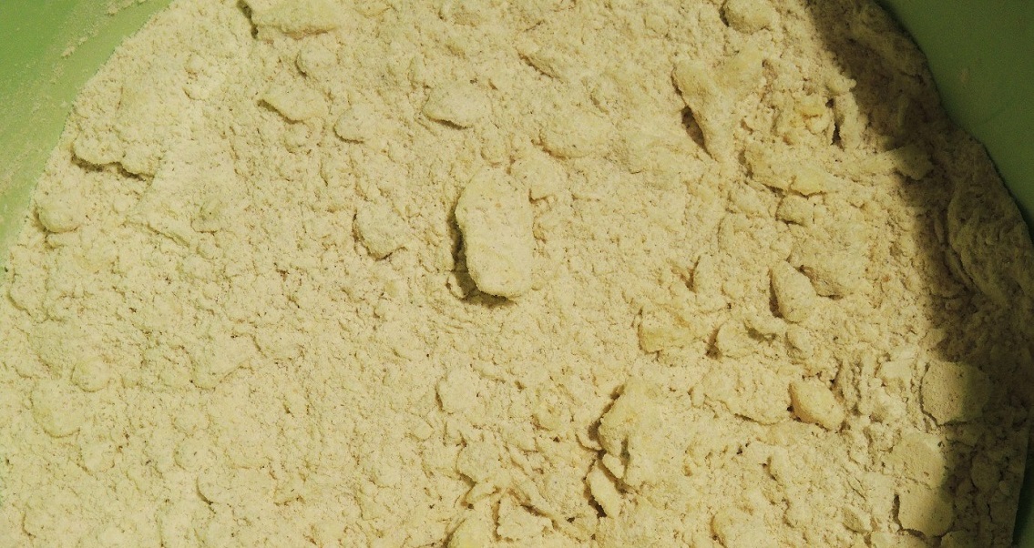 Aby wykonać spód do sernika należy połączyć przesianą mąkę z proszkiem do pieczenia. Następnie mieszankę przesiekać z masłem (lub zetrzeć zmrożone masło na tarce).