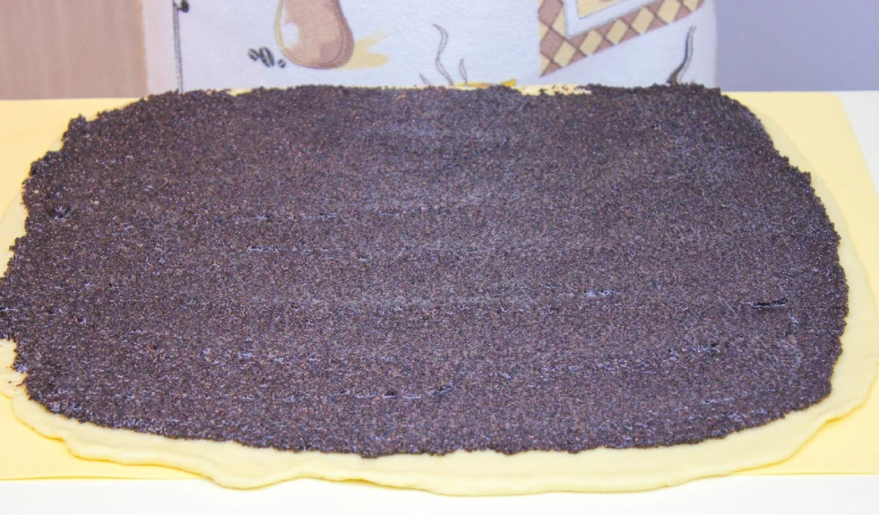 Kolejny krok to zagotowanie mleka z cukrem i cukrem wanilinowym przez około kilka minut, a następnie dodanie zmielonego maku i startej skórki z jednej cytryny. Powstałe wyrośnięte ciasto należy wyłożyć na stolnicę oprószoną mąką i rozdzielić je na ćwiartki. Każdą następnie rozwałkować je na prostokąty o grubości 3 mm.