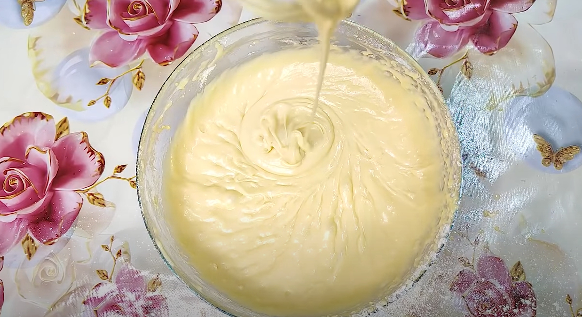 Masło roztapiamy w rondelku i odstawiamy do przestudzenia. W misce ubijamy jajka z cukrem. Dodajemy do nich nasze masło i mleko. Składniki mieszamy łyżką do połączenia. Następnie dodajemy stopniowo mąkę z proszkiem do pieczenia. Wszystko mieszamy łyżką do połączenia.