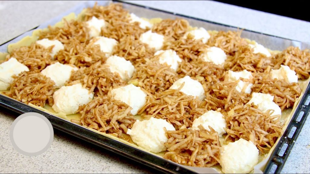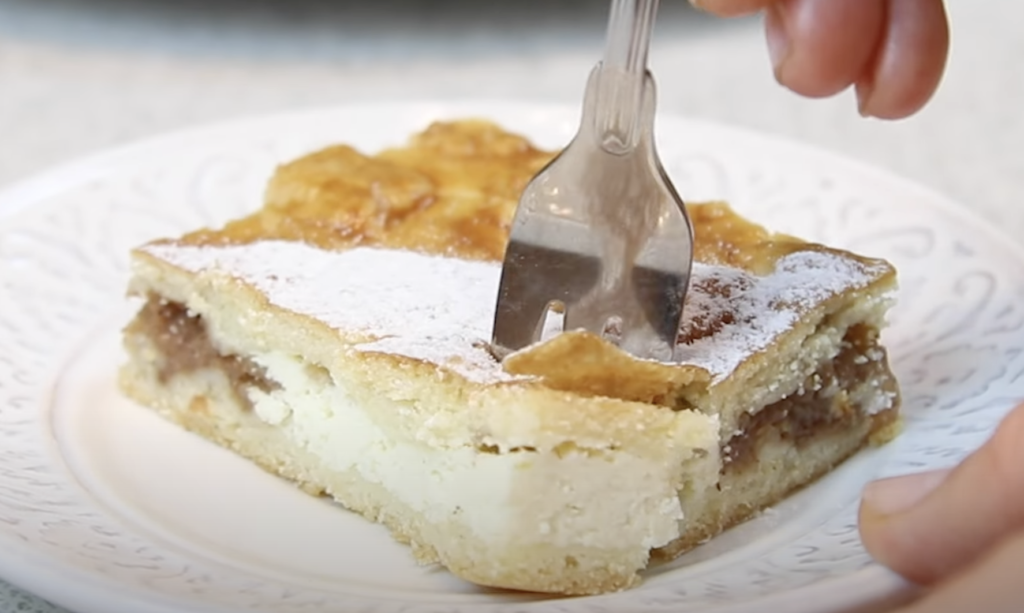 Piecz ciasto przez 40 minut w piekarniku w temperaturze 180°C. Po wystudzeniu delektuj się tym pysznym, serowym ciastem z jabłkami.