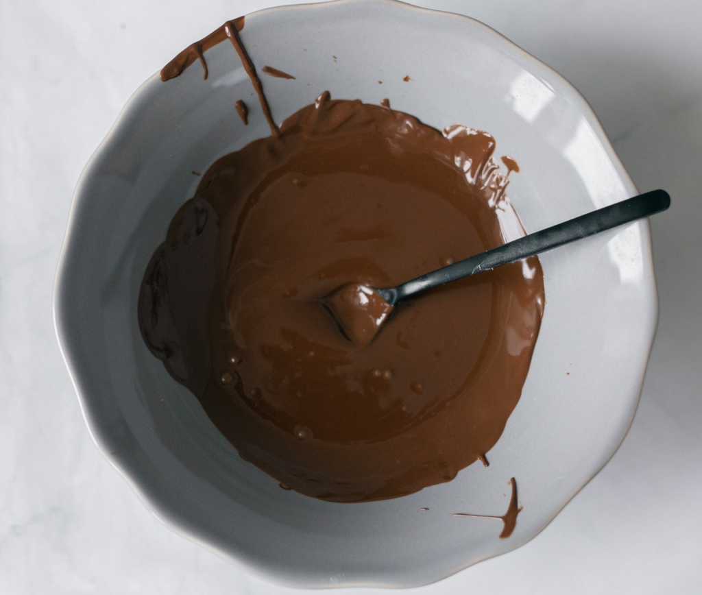 W ostatniej kolejności należy przygotować polewę do deseru. W tym celu podgrzewamy śmietankę w rondelku na niskiej temperaturze i ciągle mieszając dodawać do niej kawałki czekolady, do momentu aż wszystko się roztopi i połączy ze sobą. Opcjonalnie można przygotować polewę w mikrofalówce.