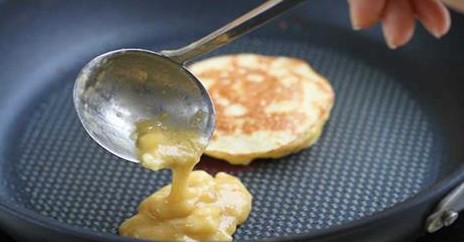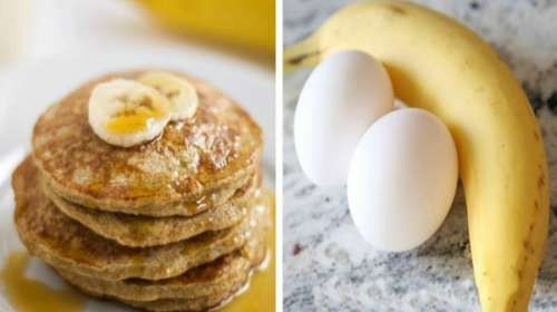 Rozdrób banany na papkę i odmierz pół szklanki. Wsyp je do miski, a następnie wbij jajka. Wymieszaj składniki tak, by powstało rzadkie ciasto. Wlej jedną czwartą ciasta na patelnię. Smaż naleśnika na średnim ogniu. Odwróć na drugą stronę, gdy pojawią się pęcherze. Tak samo smaż pozostałe naleśniki.