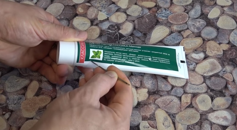 Choć spłuczka do toalety to dość nietypowe sposób na przechowywanie w niej przedmiotów, warto spróbować ukryć tam pastę do zębów. Mówimy całkiem poważnie: wybierz pastę o mocnym, ziołowym zapachu i wykonaj w niej kilkanaście małych otworków.