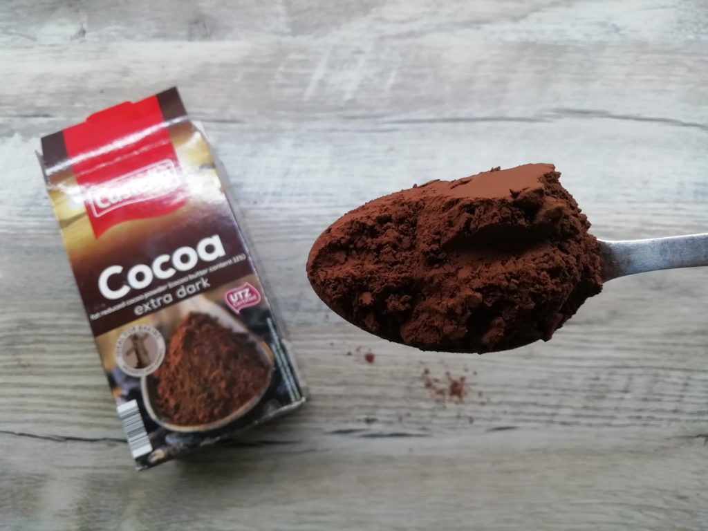 Do jednej dodaj kakao, do drugiej olejek waniliowy. Każdą dokładnie wymieszaj.