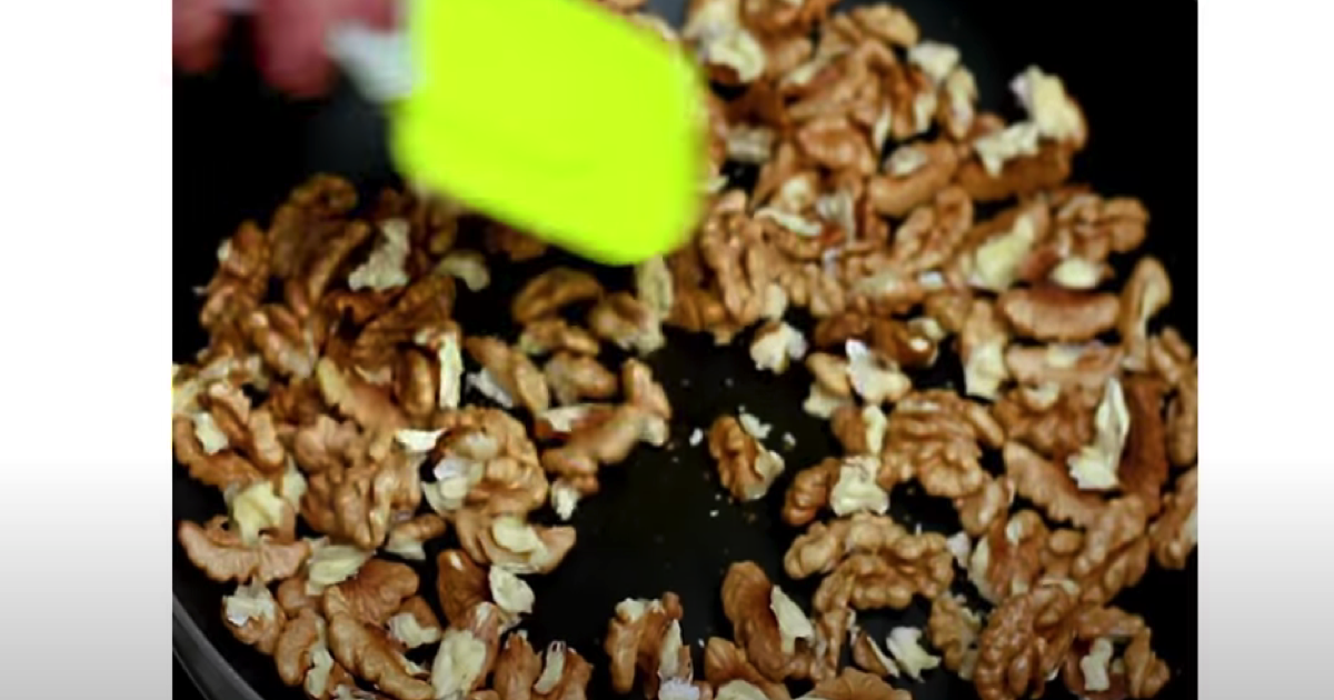 Orzechy upraż na patelni – upewnij się, że jest sucha i rozgrzana. Następnie delikatnie je pokrusz ( w zależności od tego jakiej wielkości będą najbardziej Ci odpowiadać).