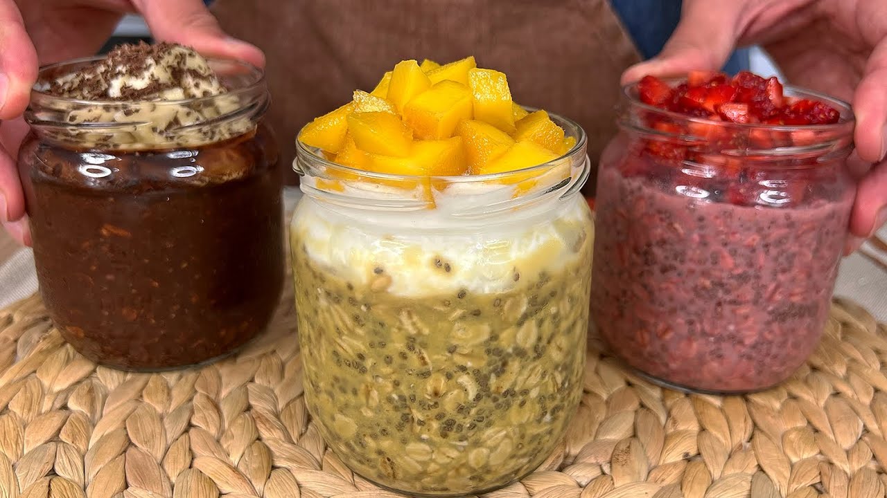 W dużej misce połącz płatki owsiane i nasiona chia. Dodaj wybrane składniki według jednego z powyższych przepisów (mango, truskawki lub banan). Dodaj mleko i słodzik do smaku. Mango obierz i pokrój na kawałki. 2/3 mango zmiksuj z mlekiem i słodzikiem, a resztę odłóż do dekoracji. Wymieszaj z podstawowymi składnikami. Przykryj miskę i wstaw do lodówki na noc. Rano udekoruj płatki owsiane dodatkami: truskawkami, bananem, czekoladą, mango lub jogurtem greckim.